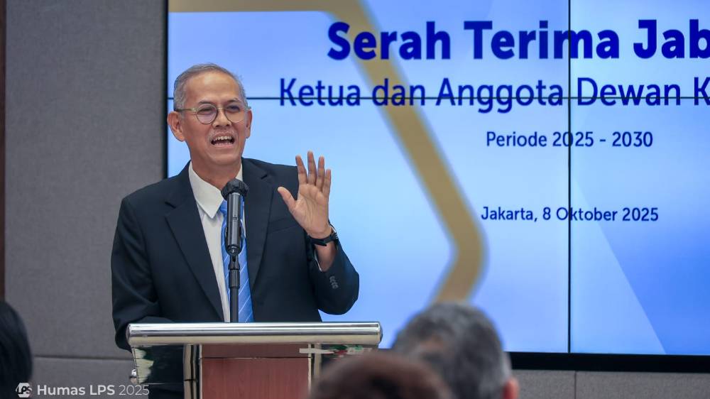 Selepas pelantikan. Pada hari yang sama juga dilakukan serah terima jabatan Ketua, Wakil Ketua, dan Anggota Dewan Komisioner LPS yang baru saja dilantik di Kantor LPS, Jakarta (8/10) yang dihadiri oleh Menteri Keuangan sekaligus Ketua KSSK, Purbaya Yudhi Sadewa, Ketua Dewan Komisioner OJK Mahendra Siregar, Ketua Komisi XI DPR Mukhammad Misbakhun, Anggota II BPK Daniel Lumban Tobing, Deputi Senior Gubernur BI Destry Damayanti dan lainnya. (TJG)